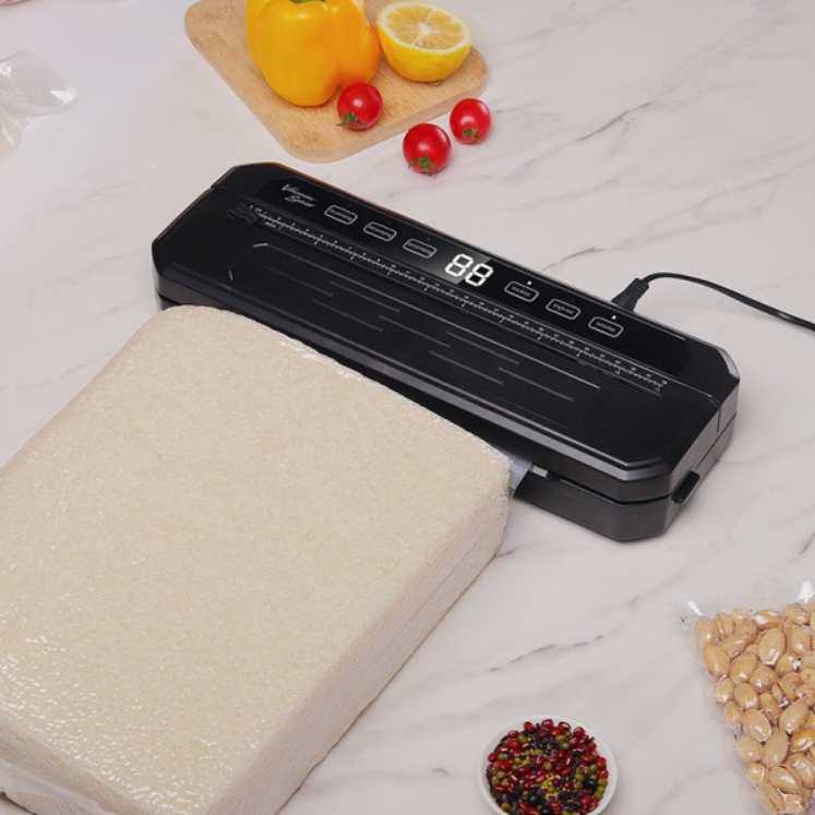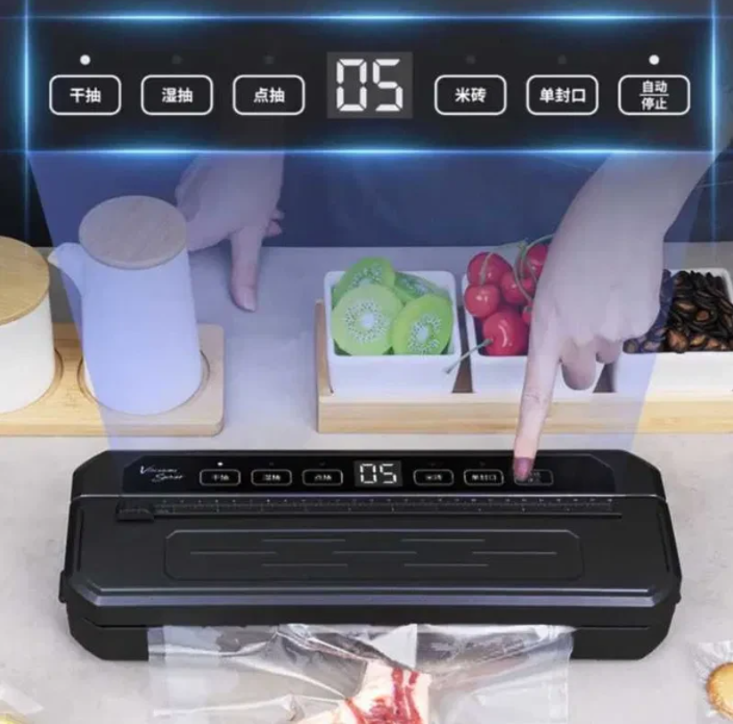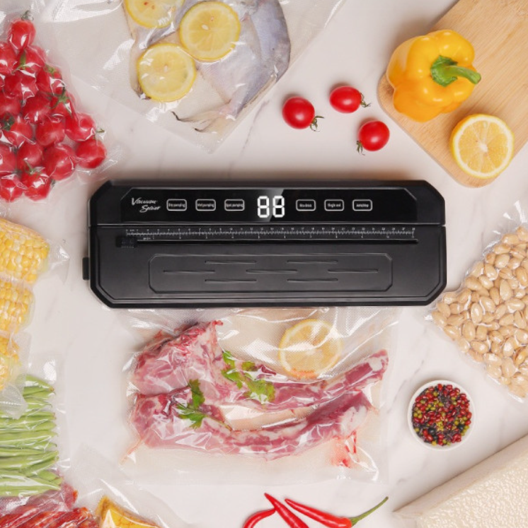 Food Vacuum Sealer 65 кПа — це сучасний вакуумний пакувальник для домашнього використання, який дозволяє зберігати продукти свіжими значно довше. Він підходить як для сухих, так і для вологих продуктів: м’яса, риби, овочів, фруктів, сирів, снеків та напівфабрикатів.